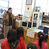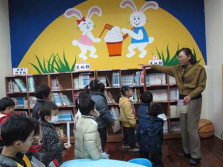 圖書館阿姨向我們介紹館內各種設備,我們都很認真聽講喔。
