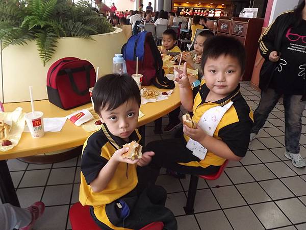 肚子餓了,歇歇吧!我們的午餐是麥當勞喔!