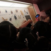 接著我們要去參觀恐龍時代,一看到昆蟲標本,大家都睜大了眼